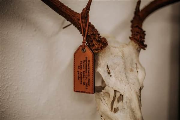Personalized taxidermy tags.