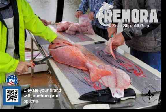 REMORA® cleaning & fillet mat. Anti-slip, odor-resistant, and easy to clean, the REMORA® mat stays put while you process fish, fowl, or game. Use it in the kitchen, on the boat, or at camp. Two sizes. Made in the USA.