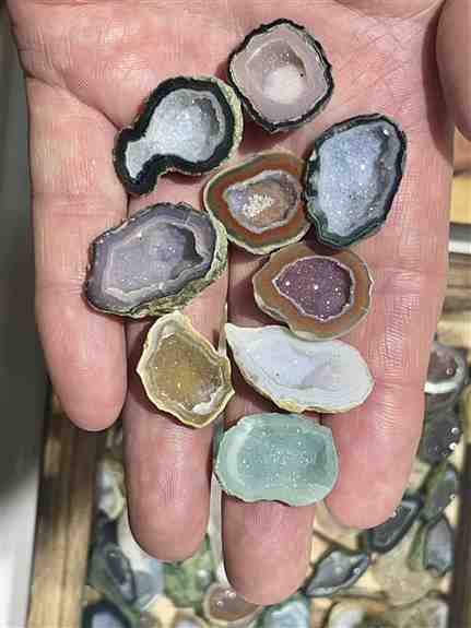I will have one of a kind thunder eggs from Oregon large and small, unique fish fossils, a new selection of crystal geodes you can crack open in our fun zone and a fun selection of tumbled stones you can look through for polished fun to take home alo
